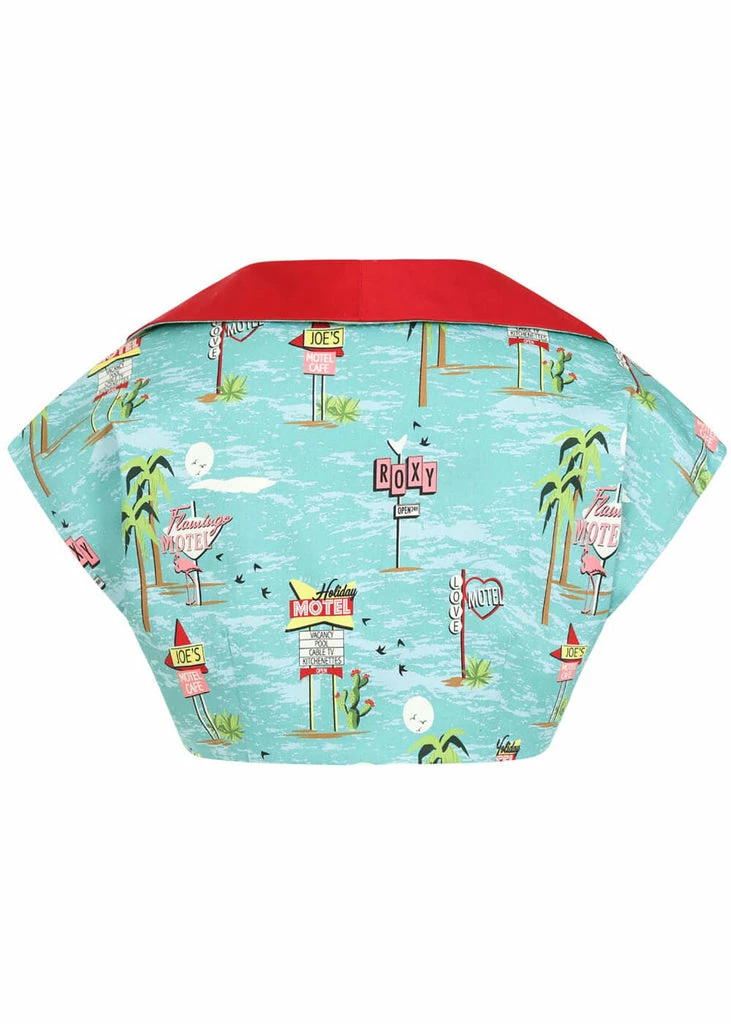This cute little bolero is pin-up-perfect with her red collar and short sleeves. Her high quality cotton-mix with slight stretch is lovely lightweight to wear.