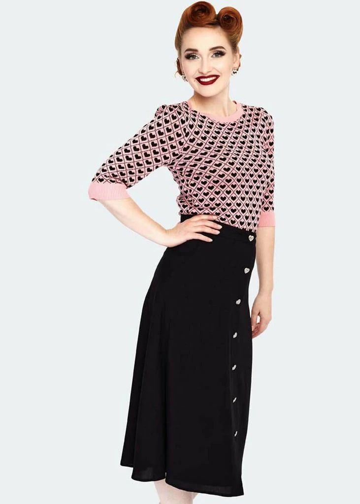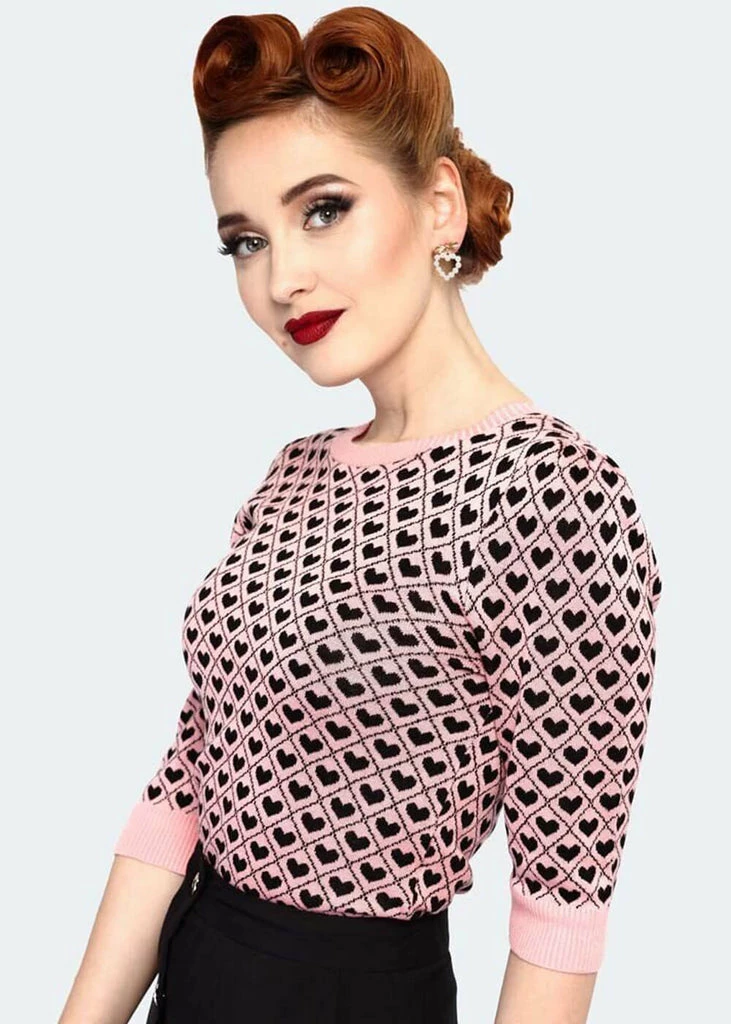 With the retro brand Voodoo Vixen, even jumpers have an amazing detail, this one has a heart pattern that has yours skip a beat! She’s made of knitted viscose with fine stretch, making her feel cozy, lightweight and soft. Her closefitting model is ribbed at the bottom, the v-neck and the sleeves, so the warmthj stays inside.
